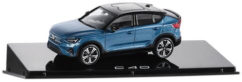 VOLVO AJÁNDÉKTÁRGY, VOLVO C40 MODELLAUTÓ 1:43 , A GYÁR ÁLTAL FORGALMAZOTT TERMÉK. A Volvo C40 1:43 arányú modellje tökéletes belső és külső részletekkel rendelkezik. A Volvo C40 1:43 modellautó egy kifinomult és részletgazdag replika, amely hűen tükrözi a valóságos Volvo C40 eleganciáját és modern dizájnját. A Fjord Blue színben pompázó modell autó a Volvo stílus