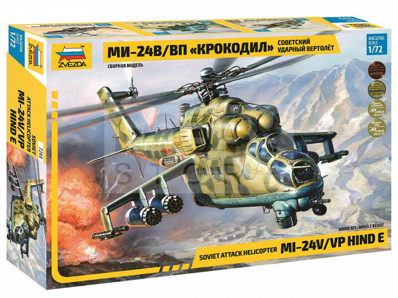 Zvezda Mil Mi-24V Hind C makett 1:72 (7293Z) Makett méretarány: 1:72 Alkatrész darabszám: 270 Makett hosszúsága: 29,8 cm A Zvezda a kiváló műanyag modelljei kapcsán vált világszerte ismerté. Makettei a legnépszerűbb méretarányokban érhető el. Elsősorban 2. világháborús gépezetek és kiegészítőik kapcsán érdemes megemlíteni a nevét, de a történelmi makettekből is s