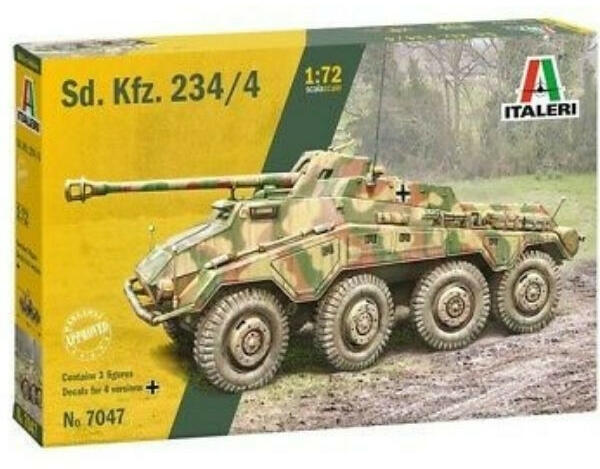 1:72 méretarányú, Sd. Kfz. 234/4 katonai jármű makett. Az Sd. Kfz. 234/4 egy II. világháborús német harcjármű, amit 1944-ben gyártottak és a nyugati és a keleti fronton is bevetettek. Fegyverzete egy 75 mm-es páncéltörő löveg volt, ami alkalmassá tette a szövetséges páncélosok leküzdésére is. Felderítő és páncélelhárító szerepben is alkalmazták. A leterhelt és
