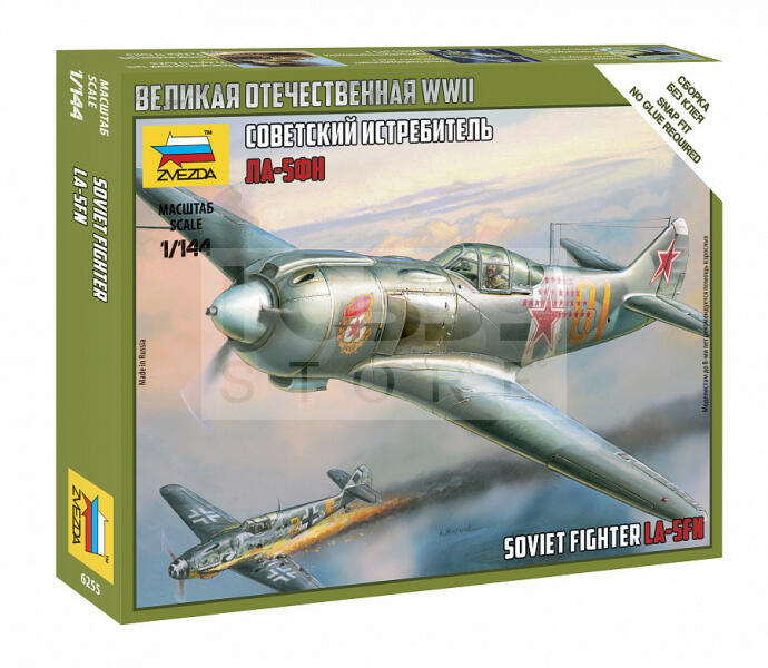 Zvezda La-5 Soviet Fighter makett 1:144 (6255Z) Makett méretarány: 1:144 Alkatrész darabszám: 13 Makett hosszúsága: 6 cm A Zvezda a kiváló műanyag modelljei kapcsán vált világszerte ismerté. Makettei a legnépszerűbb méretarányokban érhető el. Elsősorban 2. világháborús gépezetek és kiegészítőik kapcsán érdemes megemlíteni a nevét, de a történelmi makettekből is s
