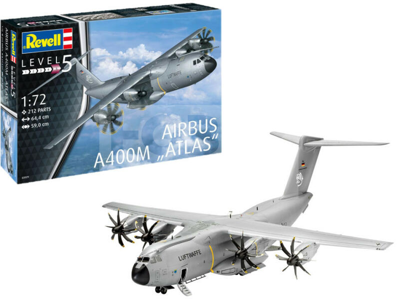 Revell Airbus A400M Luftwaffe 1:72 repülő makett 03929R Makett méretarány: 1:72 Alkatrész darabszám: 212 Makett hossúság: 64,4 cm Festést és ragasztást igénylő műanyag makett. A szükséges kiegészítőket, mint festék, ragasztó a készlet nem tartalmazza . Gyártó: Revell A Revell tradicionális nagy múltú makett gyártó. Már több mint 60 éve kápráztatja el a rajongóit