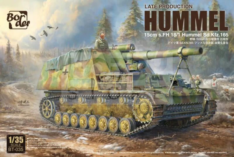Border Model Hummel late Production - Sd. Kfz. 165 makett 1:35 (BT035) Makett méretarány: 1:35 A Border Model neve részletes műanyag modelleik kapcsán vált híressé. Jó minősége és részletgazdag kidolozottsága miatt népszerű a makettezők körében. Főleg katonai harcjárművek és repülők találhatóak meg kínálatukban. Könnyű összeszerelhetősége által jó választás le