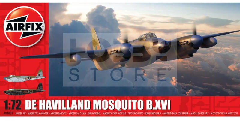 Airfix de Havilland Mosquito repülőgép makett 1:72 (A04023) Makett méretarány: 1:72 Alkatrész darabszám: 161 Makett hossúság: 17,42 cm Festést és ragasztást igénylő műanyag makett. A szükséges kiegészítőket, mint festék, ragasztó a készlet nem tartalmazza . Gyártó: Airfix Az Airfix egy tradicionális brit fröccsöntött műanyag makett gyártó cég. Az Egyesült Királys