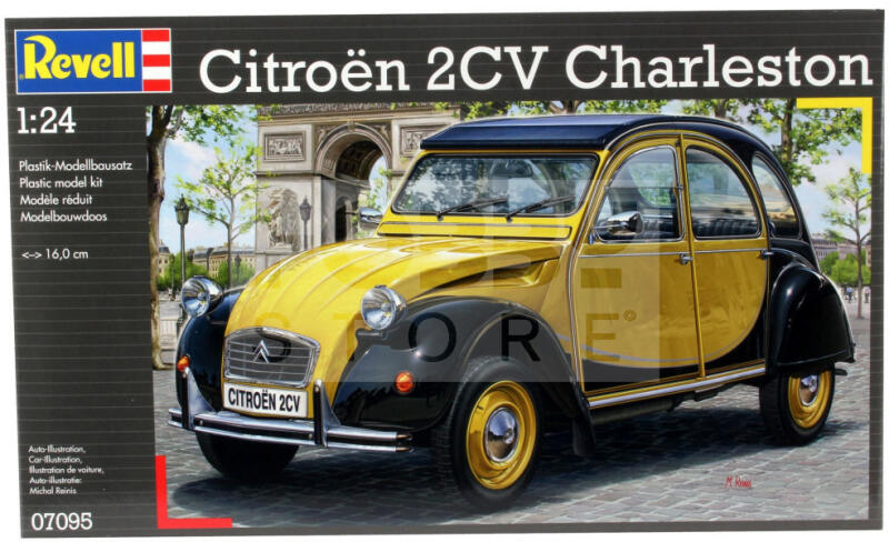 Revell Citroen 2CV Charleston 1:24 autó makett 07095R Makett méretarány: 1:24 Alkatrész darabszám: 126 Makett hossúság: 16,0 cm Festést és ragasztást igénylő műanyag makett. A szükséges kiegészítőket, mint festék, ragasztó a készlet nem tartalmazza . Gyártó: Revell A Revell tradicionális nagy múltú makett gyártó. Már több mint 60 éve kápráztatja el a rajongóit ter