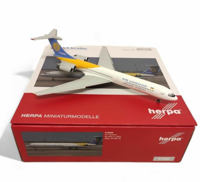 Iljusin IL-62M Air Ukraine repülőgép modellA modell tartó állvánnyal, futóművekkel és antennákkal is rendelkezik. Anyaga: fémMéret: 26,5 cmGyártó: Herpa WingsModelljeink épségét a szállítás előtt ellenőrizzük, majd a dobozt védőzárral látjuk el. A gyárilag fóliás csomagolásokat nem bontjuk fel. 14 év alatt nem ajánlott! Kicsomagolásnál óvatosan vegye ki a műan