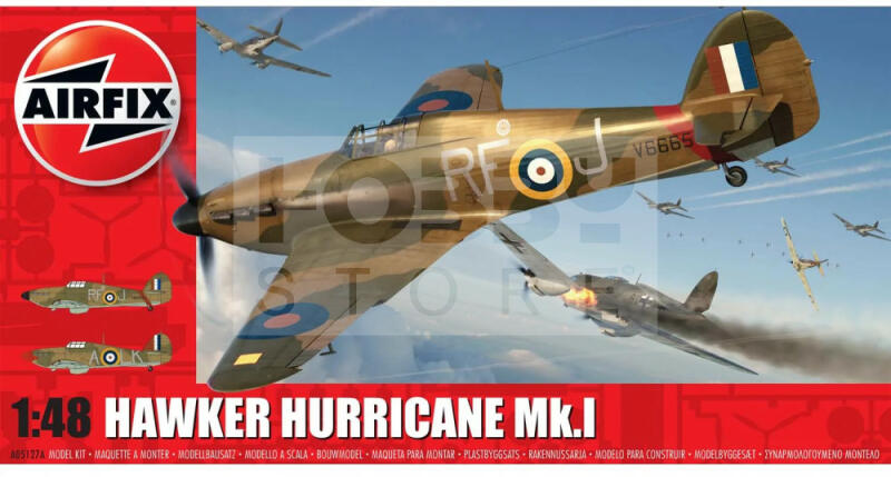 Airfix Hawker Hurricane Mk. 1 repülőgép makett 1:48 (A05127A) Makett méretarány: 1:48 Alkatrész darabszám: 127 Makett hossúság: 20,4 cm Festést és ragasztást igénylő műanyag makett. A szükséges kiegészítőket, mint festék, ragasztó a készlet nem tartalmazza . Gyártó: Airfix Az Airfix egy tradicionális brit fröccsöntött műanyag makett gyártó cég. Az Egyesült Király