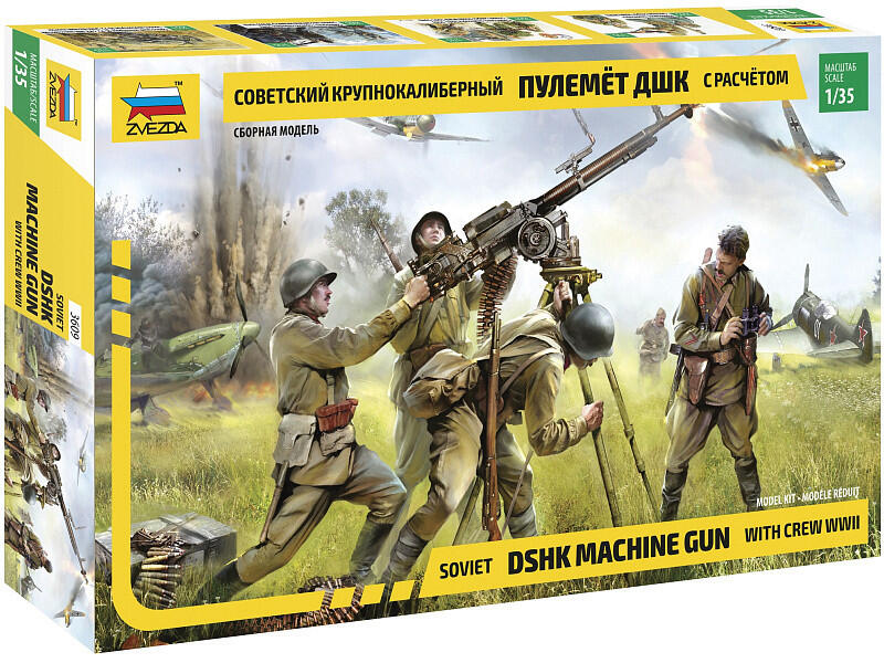 Festést, ragasztást igénylő makett. Az orosz légvédelem történetének legsikeresebb darabja a DSHK volt. Pár változatot megélt a gyártás alatt és számos felhasználási módja is volt. A készletben a földi telepítésű változat található, de ezen egyver modifikációja megtalálható volt harckocsikon, és hajókon is. A makett meglepően részletes, az alkatrészek száma sem