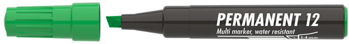 PERMANENT MARKER KEREK 1-4MM ZÖLD PERMANENT 12 ICO Műanyag, üveg, fém, fa, illetve szinte minden felület feliratozására, jelölésére alkalmas, alkoholbázisú festékkel töltött permanent marker. Írásképe száradás után törlés- és vízálló. Vágott csúccsal, klipszes kupakkal. Vonalvastagság: 1-4 mm. Alkoholos filc Katalóguskód: 15489