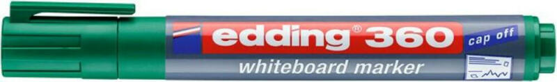Tábla- és flipchart marker, 1,5-3 mm, kúpos, EDDING 360, zöld (TED36041) - fehér táblára való írásra, rajzolásra alkalmas marker - "Cap-off" festékkel töltve, ezért néhány napig kupak nélkül sem szárad be - az írás szárazon könnyen letörölhető - kerekített csúccsal - műanyag test - vonalvastagság: 1,5-3 mm Gyártó/első EU forgalmazó elérhetősége: EDDING INTERNAT