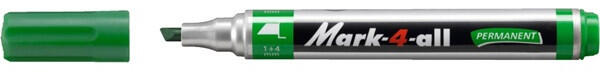 Stabilo Mark-4-all vágott hegyű zöld permanent marker - Vágott hegyű permanens marker - Szinte minden felületre ír - Oldószer mentes - Hosszú ideig kibírja kupak nélkül - Vonalvastagság 1-4 mm