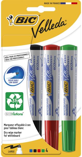 Bic ECO Velleda 1701 filctoll, 4 darab Ezek a környezetbarát tervezésű BIC Velleda 1701 ECOlutions táblafilctollak 51%-ban újrahasznosított anyagokból készülnek (a tintarendszert nem számítva). Mivel a BIC folyamatosan törekszik a környezeti lábnyomának csökkentésére, a környezetvédelem iránti hosszú távú elkötelezettségének részeként kifejlesztette az újrahasznosít