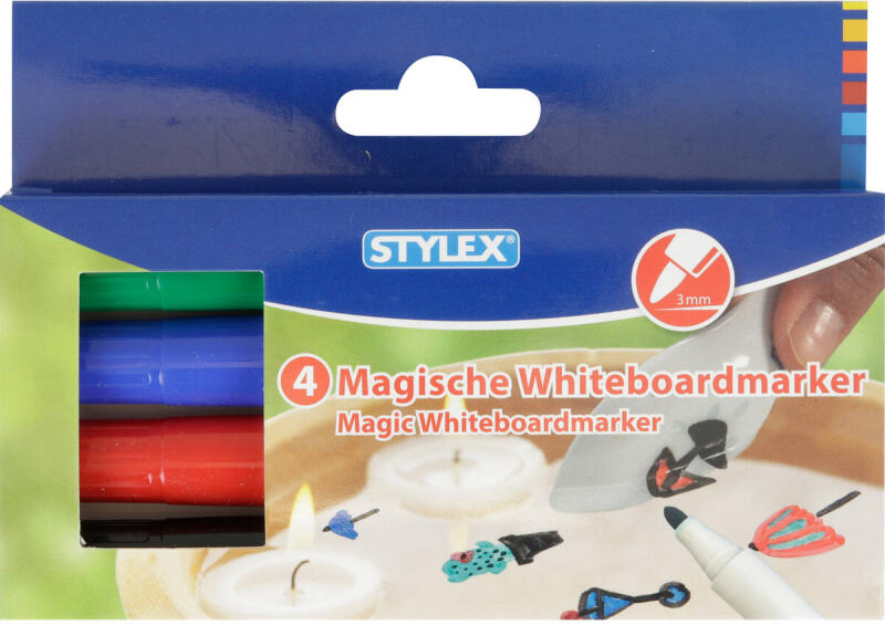 Multifunkciós táblamarker: - mágneses fehértáblára való írásra, rajzolásra. - speciális festékanyagának köszönhetően, néhány napig, kupak nélkül sem szárad be. -a kupakban elhelyezett mágnes révén, acél táblafelületeken rögzíthető. - az írás szárazon letörölhető, melyet a kupak végén található táblatörlő korong is segít. Kerekített csúccsal. Vonalvasta
