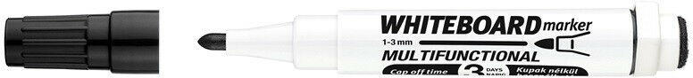 Fehértáblára való írásra, rajzolásra alkalmas marker. „Cap-off festékkel töltve, ezért néhány napig kupak nélkül sem szárad be. Az írás szárazon letörölhető. Megnövelt élettartam a nagyobb méretű testnek köszönhetően. Kerekített csúccsal. Vonalvastagság: 3 mm. .