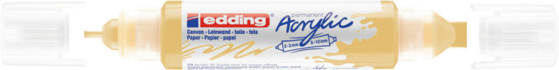 - Kétoldalú edding 3D akril tubus egyedi effektusokhoz és sötét és világos felületekre történő festéshez, ideális olyan anyagokhoz, mint a vászon vagy a festőpapír. - A kétoldalú tubus két különböző írócsúccsal rendelkezik 2 - 3 mm és 5 - 10 mm vonalvastagságban. - A kiváló minőségű, pigmentált, vízbázisú akrilfesték száradás után rendkívül tartós, átl