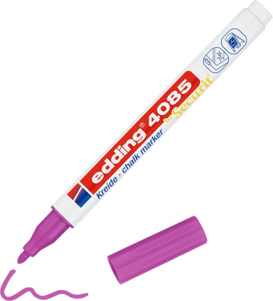 Vízbázisú krétamarker. Ellenáll az esőnek, ugyanakkor vizes ronggyal könnyen letörölhető. Fekete, világító táblán jól látható a fluoreszkáló színeknek köszönhetően. Kúpos hegy. Vonalvastagság: 1,8 - 2,5 mm.