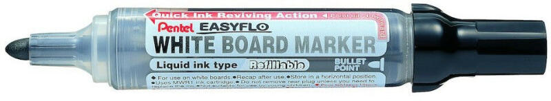 Gömbhegyű, vízbázisú táblamarker. A Folyadéktartálynak köszönhetően folyamatos a tinta áramlás és soha nem szárad ki. Használat előtt rövid ideig tartsa heggyel lefelé a markert. Utántölthető, patron: MWR1. Acryl szálas, mindig alaktartó és strapabíró hegy. 94%-ban újrahasznosított anyagból készült, eleme a Pentel Recyology termékcsaládnak. A vele írt szöveg ví