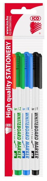 ICO Top M 4db-os vegyes színű táblamarker készlet - Fehértáblára való írásra, rajzolásra alkalmas marker - Az írás szárazon könnyen letörölhető - Kerekített csúcs - Vonalvastagság: 1-1,5 mm - Kiszerelés: 4 színű készlet