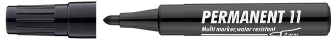 PERMANENT MARKER ALKOHOLOS KEREK VÉGŰ 3MM FEKETE BLUERING "Muanyag, üveg, fém, fa, illetve szinte minden felület feliratozására, jelölésére alkalmas, alkoholbázisú festékkel töltött permanent marker vastag írócsúccsal. A kerekített csúcs vonalvastagsága: 3 mm. Írásképe gyorsan száradó, vízálló, fény- és kopásálló. Írásképe vízálló, kerek csúccsal és légme