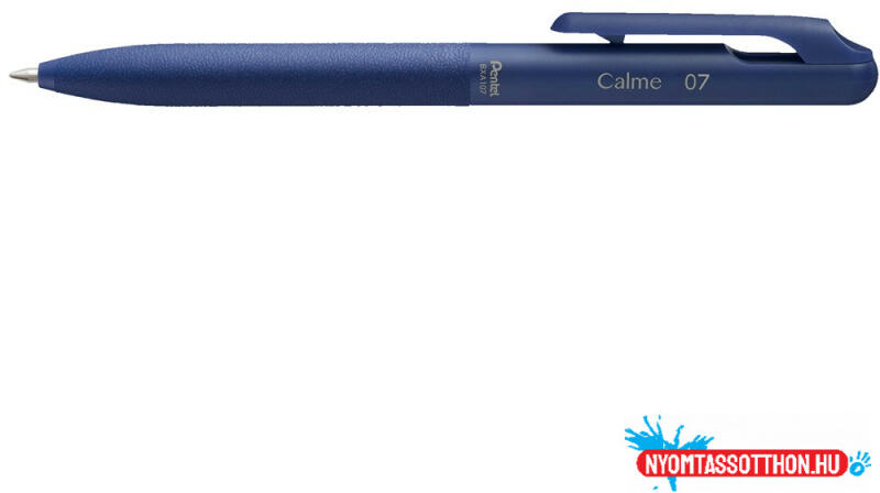 Golyóstoll nyomógombos 0,35mm, BXA107C-C Pentel CALME, írásszín kék A Pentel új CALME nyomógombos golyóstoll család kifejlesztésénél a mechanikai zaj jelentős csökkentése és a prémium érzet elérése volt a cél, az eredmény egy, bármely versenytárséval összehasonlítva 66%-al halkabb mechanizmusú nyomógombos golyostoll. Bőrhatású és érzetű csúszásmentes fogózón