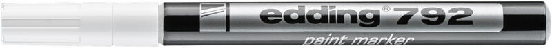 LAKKMARKER 0,8MM, KEREK EDDING 792 FEHÉR Üveg, porcelán, műanyag, fém illetve szinte minden felület feliratozására, jelölésére alkalmas, különösen ajánlott szennyezett felületekhez. Lakk- és dekorációs marker. Kerekített csúcs, műanyag test, permanent, lakkszerűen fedő festékkel töltve. Gyorsan száradó festék, írásképe törlés- és vízálló, magas fény- hő- és