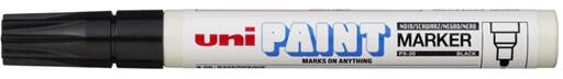 Uni PX-20 fekete lakkmarker - A legmagasabb igényeket kielégítő, nagy fedőképességű lakkfilc, ipari jelölő és kreatív területekre - Minden felületen víz-, hő- és UV-álló az íráskép - Szalagon, szöveten az oldószer nem hagy nyomot - Alumínium tollszárban gazdaságos tintaadagolással, cserélhető heggyel, a tinta színével megegyező kupakkal rendelkezik - Írásvastags