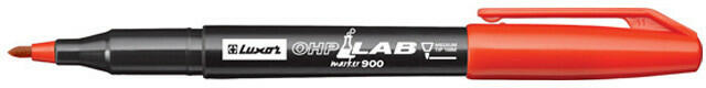 Gyorsan száradó színtartó festék, írásképe törlés- és vízálló, szinte minden felület feliratozására alkalmas. Luxor rostirón, OHP Permanent Marker 900 M, 1 mm, piros. „M vastagságú, poliészterszálas japán hegy. Hőálló tinta. Kiváló OHP fóliák jelölésére. Használható: műanyag, kerámia, üveg és fényes felületeken egyaránt.