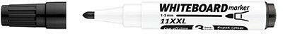 Táblamarker ICO Plan 11 XXL kerek fekete 1-3mm Fehér táblára való írásra, rajzolásra alkalmas marker. "Cap-off" festékkel töltve, ezért néhány napig kupak nélkül sem szárad be. Az írás szárazon letörölhető. Megnövelt élettartam a nagyobb méretű testnek köszönhetően. Kerekített csúccsal .