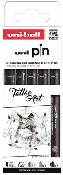 Az uni-ball PIN, egy fakulásálló és vízálló pigmenttinta rajzmarker. A PIN tollhegy méreteinek széles választéka lehetővé teszi, hogy éles, tiszta vonalakat és olyan tökéletes technikákat hozz létre, mint a pontozva árnyékolás, a keresztsraffozás és az árnyékolás. A tömör, pigment tintavonal könnyen használható akvarellhez, mivel a tinta nedves állapotban nem kenő