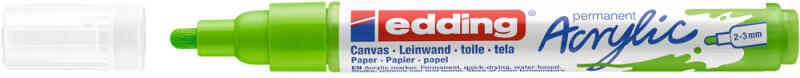 AKRIL MARKER 2-3 MM EDDING 5100 SÁRGÁSZÖLD D10 Akril marker világos vagy sötét felületekre történő festéshez, ideális olyan anyagokhoz, mint a vászon vagy a festőpapír. - A kerekített csúcs vonalvastagsága 2-3 mm. - A kiváló minőségű, pigmentált, vízbázisú akrilfesték száradás után rendkívül tartós, átlátszatlan, fényálló és szagtalan. - A neon sárga szín