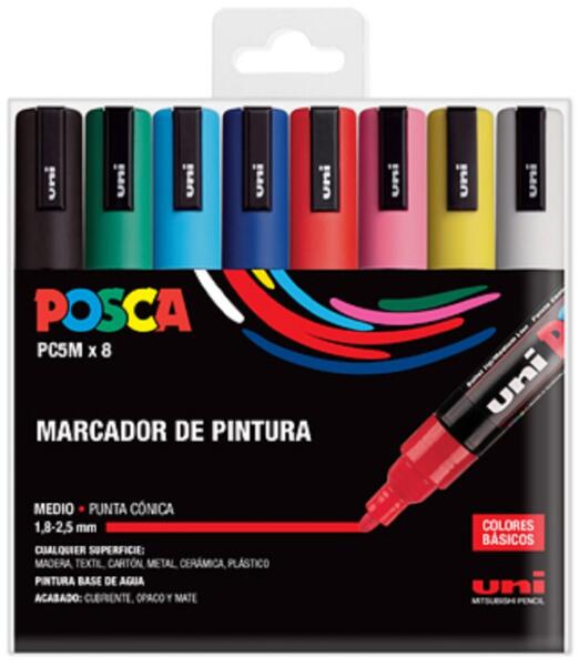 Megjegyzés: Ez a leírás automatikusan le lett fordítva magyarra. Ez a 8 részes POSCA jelölőkészlet olyan jelölőkkel rendelkezik, amelyek szinte bármilyen felületen használhatók, amiről csak álmodni lehet - papír, üveg, karton, fa, porcelán, fém, textil, kerámia, műanyag és így tovább. A PC-5M közepes golyós hegy marker a POSCA termékcsalád "multifunkcionális" markere,