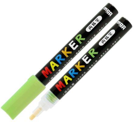 A dekoratív jelölő alkalmas olyan felületek festésére, mint: kő, kerámia, porcelán, üveg, fa, textil, vászon, fém, fa, műanyag, polimer agyag stb. - erősen pigmentált akrilfesték - gyorsan szárad, így tartós és fényes felületet hoz létre világos és sötét felületeken - a tinta ellenáll a víznek, a fakulásnak és a kopásnak hegy szélessége: 2 mm szín: sárga zöld