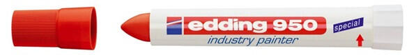 Edding 950 piros permanent ipari jelölőkréta - Rendkívül permanens, kiválóan fedő festékpaszta, vonalvastagsága kb. 10 mm - Főként durva felületek, szennyezett anyagok vagy rozsdás fémek feliratozására alkalmas - Színtartó, száradás után törlés-, és vízálló - Szín: piros