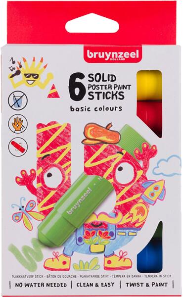 BRUYNZEEL markerek festéshez Basic - 6 db-os készlet Festsen könnyedén, ecset vagy víz nélkül ezekkel a praktikus gouache markerekkel! Az élénk és átlátszatlan festékek gyorsan száradnak és könnyen keverhetők. A sima színnek köszönhetően a pálcikák nem gyűrődnek a pálcákon, ami órákig garantálja a szórakozást a festés során. Ezeket a festékjelzőket kifejezetten