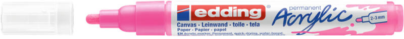 AKRIL MARKER 2-3 MM EDDING 5100 NEON RÓZSASZÍN D10 Akril marker világos vagy sötét felületekre történő festéshez, ideális olyan anyagokhoz, mint a vászon vagy a festőpapír. - A kerekített csúcs vonalvastagsága 2-3 mm. - A kiváló minőségű, pigmentált, vízbázisú akrilfesték száradás után rendkívül tartós, átlátszatlan, fényálló és szagtalan. - A neon sárga sz