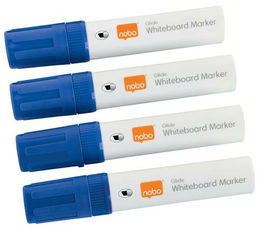 Táblamarker, vágott hegyű, 10 mm, NOBO "Glide", kék Ezek a mindennapos használatra tervezett táblamarkerek sokoldalú felhasználási lehetőséget kínálnak a nem porózus - pl. fehértábla, üveg vagy zománcozott felületeken. Használd Nobo fehértáblákon az optimális teljesítmény érdekében! -gyorsan száradó tinta -szárazon törölhető -a tolltesten egy ablakon keresztül k