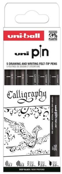 Az uni-ball PIN, egy fakulásálló és vízálló pigmenttinta rajzmarker. A PIN tollhegy méreteinek széles választéka lehetővé teszi, hogy éles, tiszta vonalakat és olyan tökéletes technikákat hozz létre, mint a pontozva árnyékolás, a keresztsraffozás és az árnyékolás. A tömör, pigment tintavonal könnyen használható akvarellhez, mivel a tinta nedves állapotban nem kenő