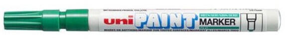 Uni PX-21 zöld lakkmarker - A legmagasabb igényeket kielégítő, nagy fedőképességű lakkfilc, ipari jelölő és kreatív területekre - Minden felületen víz-, hő- és UV-álló az íráskép - Szalagon, szöveten az oldószer nem hagy nyomot - Alumínium tollszárban gazdaságos tintaadagolással, cserélhető heggyel, a tinta színével megegyező kupakkal rendelkezik - Írásvastagsá