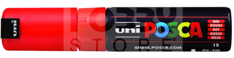 UNI POSCA PC-7M PIROS színű dekormarker-filctoll 41945U Kiváló minőségű, erős heggyel rendelkező akril dekormarker . Használható szinte bármilyen felületen legyen az fa, fém, papír, üveg, textil, kő, műanyag. . Az Uni Posca filctollak különleges finomságú akrilfestéket tartalmaznak. A Posca akril filcek színezésre és rajzolásra is alkalmasak. Bel és kültéren is haszn