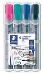 4 darabos, kerek hegyű flipchart táblamarker készlet deális papíron történő használatra, mivel a tinta nem üt át Intenzív színű, enyhe szagú Pár másodperc alatt szárad, ezért ideális balkezes felhasználók számára DRY SAFE technológia: napokig kupak nélkül tárolva sem szárad be Repülőgépbiztos - az automatikus nyomáskiegyenlítés megakadályozza a toll szivárgás