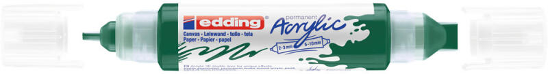 AKRIL MARKER 2-3MM ÉS 5-10MM 3D KÉTVÉGŰ EDDING 5400 MOHA ZÖLD Kétoldalú edding 3D akril tubus egyedi effektusokhoz és sötét és világos felületekre történő festéshez, ideális olyan anyagokhoz, mint a vászon vagy a festőpapír. - A kétoldalú tubus két különböző írócsúccsal rendelkezik 2 - 3 mm és 5 - 10 mm vonalvastagságban. - A kiváló minőségű, pigmentált, víz