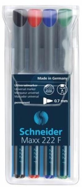 Alkoholos marker OHP, 0,7 mm, SCHNEIDER Maxx 222 F- vízálló és törlésbiztos- fóliára és minden sima felületre használható- gyorsan szárad- a színek élénkek és fényesek maradnak- a kupak színével megegyező tinta- vonalvastagság: 0,7 mm- tűhegyű Katalóguskód: 42336