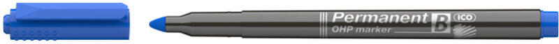 PERMANENT MARKER B, OHP ICO KÉK - alkoholbázisú tintával töltött alkoholos filc - műanyag, üveg, fém, fa, illetve szinte minden felület feliratozására alkalmas - precíziós, fémfoglalatú írócsúccsal - vékony írócsúcs - gyorsan száradó festék, - írásképe törlés- és vízálló - vonalvastagság: 2 mm - a termék 90%-ban újrahasznosított műanyag alapanyagokból kész