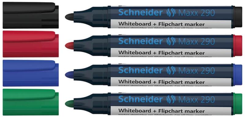 TÁBLA- ÉS FLIPCHART MARKER KÉSZLET 2-3 MM KEREK VÉGŰ SCHNEIDER MAXX 290 4 KÜLÖNBÖZŐ SZÍN