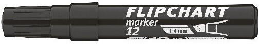 ICO Flipchart 12 fekete marker - Flipchart tömbök és egyéb papírívek feliratozására alkalmas - Vízbázisú festékkel töltött marker - A festék a papír másik oldalára nem üt át - Vágott csúccsal - Vonalvastagság: 1-4 mm - FIGYELEM! Fehértáblára való írásra nem alkalmas! - Szín: fekete