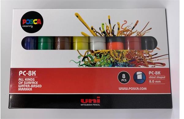 A Posca egy rendkívül sokoldalú dekormarker. Írásra, rajzolásra, festésre, jelölésre, díszítésre, hobbi tevékenységekhez használható. -az első titánoxidos nagy fedőképességű, vízbázisú marker -alkosson egyéniségének megfelelőt papírra, fémre, fára, üvegre, műanyagra, porcelánra, cserépre, textilre -vágott hegy -a tinta színével megegyező kupak -vonalvastags