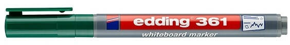 TÁBLAMARKER 1,5-3MM KEREK EDDING 361 ZÖLD Fehér táblára való írásra, rajzolásra alkalmas marker. "Cap-off" festékkel töltve, ezért néhány napig kupak nélkül sem szárad be. Az írás szárazon letörölhető. Kerekített csúccsal. Vonalvastagság: 1 mm. Katalóguskód: 47700