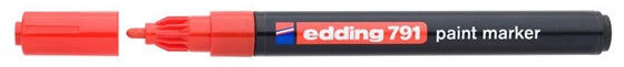 Edding 791 1-2mm piros lakkmarker - Üveg, porcelán, műanyag, fém illetve szinte minden felület feliratozására, jelölésére alkalmas - Különösen ajánlott szennyezett felületekhez - Kerekített csúcs, műanyag test, permanent, lakkszerűen fedő festékkel töltve - Gyorsan száradó festék, írásképe törlés- és vízálló, magas fény- hő- és törlésálló - Festékadagolás