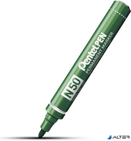 Pentel Pen N50 robosztus testű alkoholos marker -általános felhasználású marker, mely alkalmas fém-, fa-, üveg-, karton- és műanyag felületek jelölésére -ellenálló hegy -alumínium test -írásvastagság: 2 mm -íráshossz kb. 1000 méter -akár 24 óráig is bírja kupak nélkül -30 C és +60 C között 100%-os teljesítménnyel használható -akril hegye rendkívül ellenálló