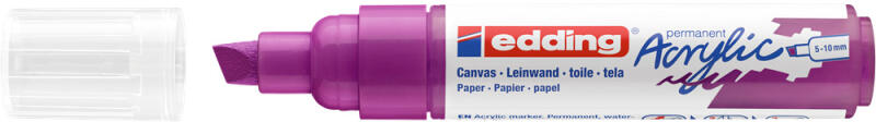 AKRIL MARKER 5-10 MM EDDING 5000 LILA D5 Akril marker világos vagy sötét felületekre történő festéshez, ideális olyan anyagokhoz, mint a vászon vagy a festőpapír. - A vágott írócsúcs vonalvastagsága 5-10 mm. - A kiváló minőségű, pigmentált, vízbázisú akrilfesték száradás után rendkívül tartós, átlátszatlan, fényálló és szagtalan. - A neon sárga szín áttets