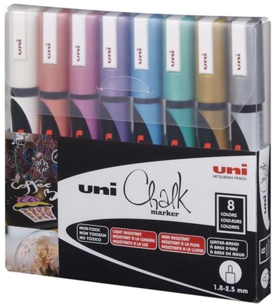 Az Uni Folyékony krétával nem porózus felületekre, például üvegre, fára, krétatáblákra és krétával festett falakra írhatunk és könnyen eltávolítható. A krétamarkerek mindenféle projekthez kiválóak - különösen hatékonyak az üvegen. Természetesen papírra és kartonra is használhatjuk őket, ha hagyományos színes tollként szeretnénk alkalmazni őket. De a folyéko